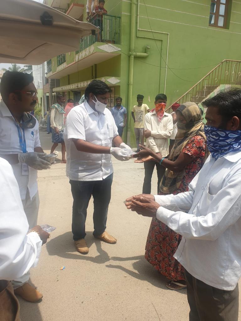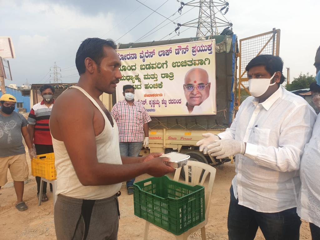 Free 40000 Food packets distribution daily in the hard hit covid times to the needy areas of Bangalore with the support of Sri Malur Krishnaiah Shetty for two months